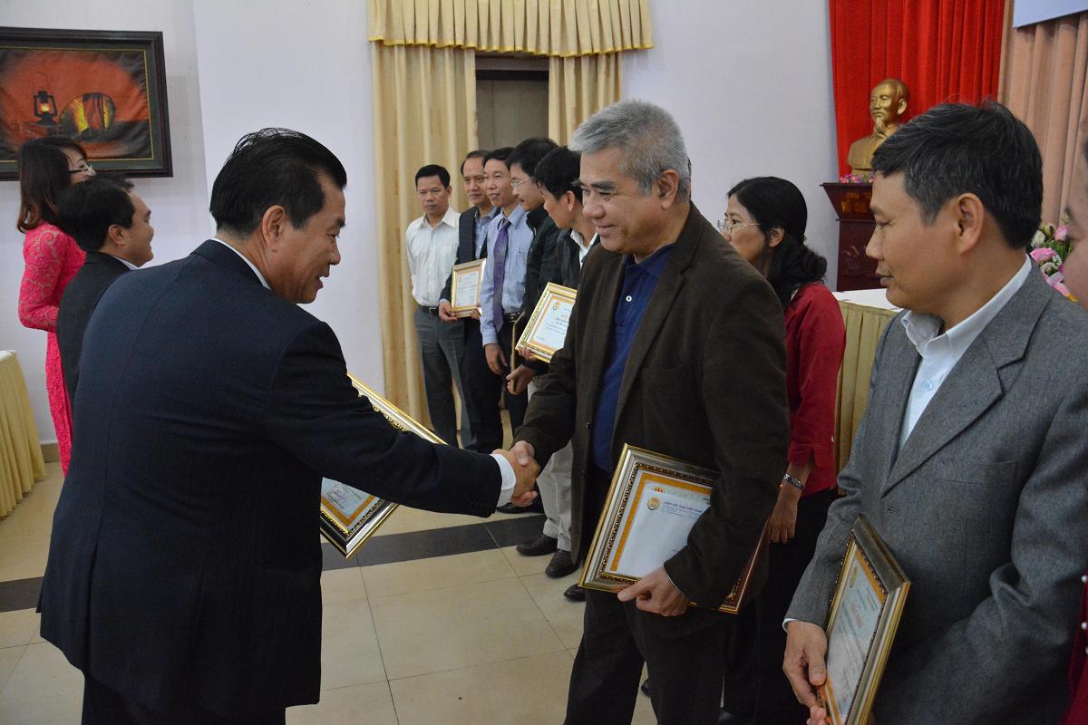 Ông Võ Văn Quyền đại diện Bộ Công Thương và Ông Nguyễn Sĩ Thắng - Chủ tịch HHGVN trao quyết định và giấy khen cho các tổ chức, cá nhân xuất sắc.