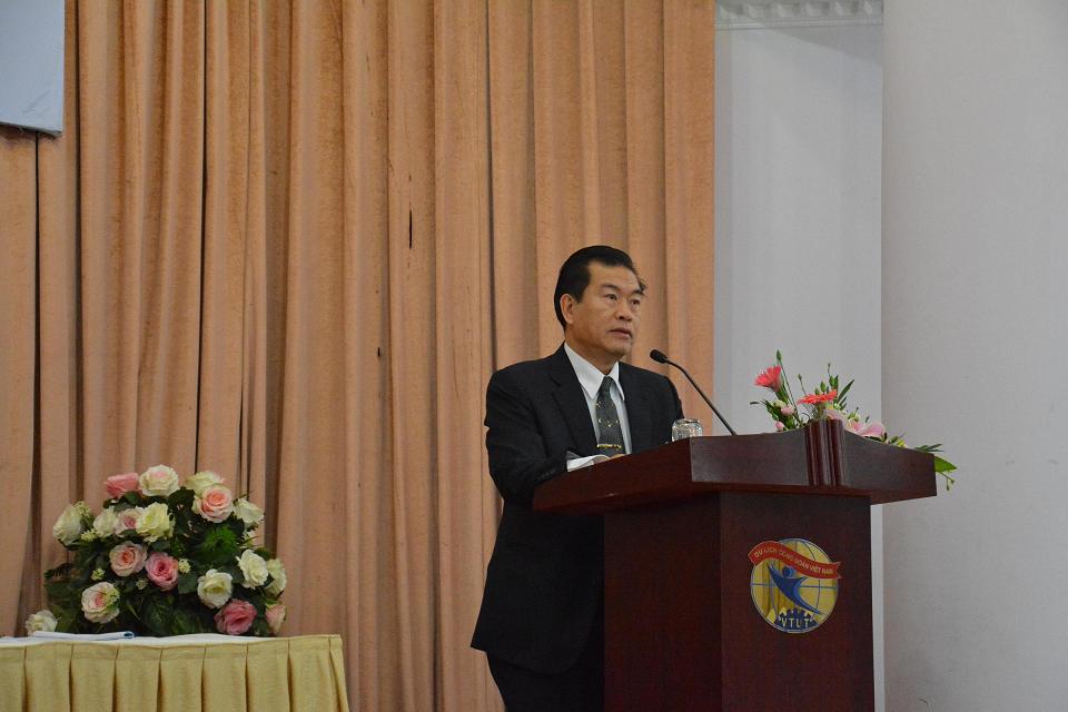 Ông Nguyễn Sĩ Thắng - Chủ tịch Hiệp hội đọc báo cáo kết quả hoạt động của Hiệp hội nhiệm kỳ 2009-2014 và Phương hướng hoạt động nhiệm kỳ 2014-2019