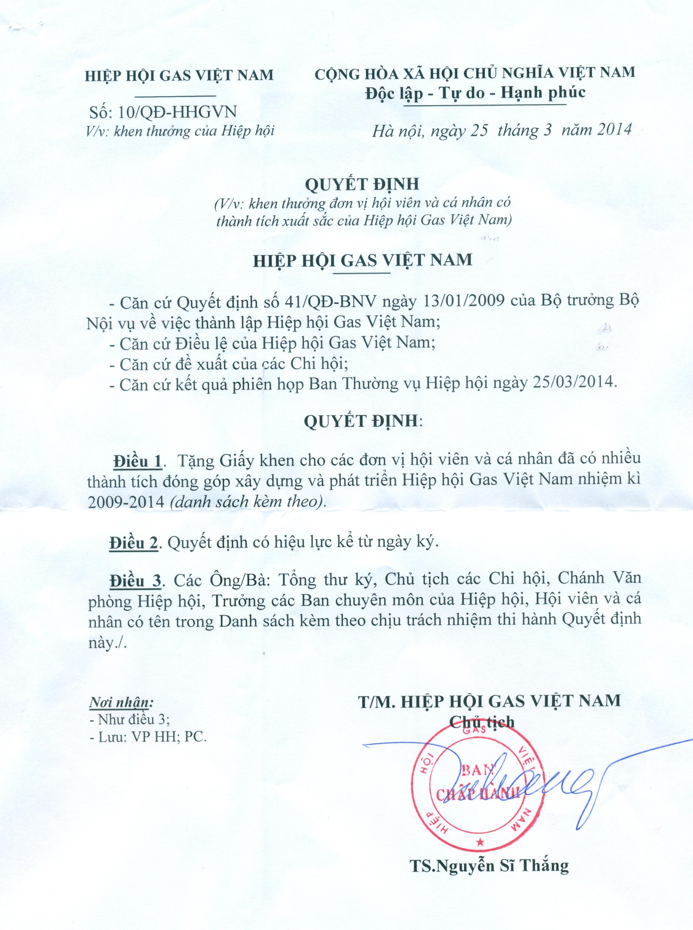 Quyết định khen thưởng và Danh sách các đơn vị cá nhân xuất sắc của HHGVN nhiệm kì I08:21:13 PM | Monday, 12/05/2014